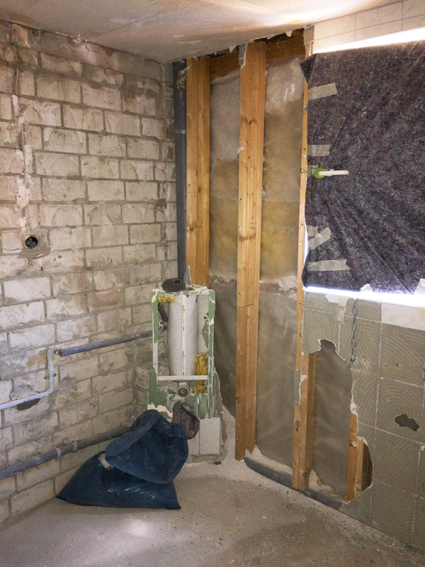 Bevor wir mit den Arbeiten für das neue Badezimmer beginnen konnten, musste zuerst das alte Bad weichen. Mit der Demontage der Holzdecke, Sanitärobjekte, Wand- und Bodenfliesen (einschl. Fliesenkleber sowie Putz) und des vorhandenen Estrichs, haben wir genug Platz für die Neugestaltung geschaffen.