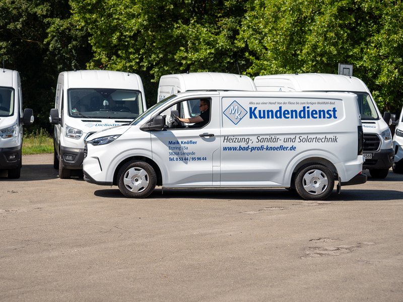 - Voll ausgestattetes Montagefahrzeug mit hochwertigen Arbeits- und Kommunikationsmitteln