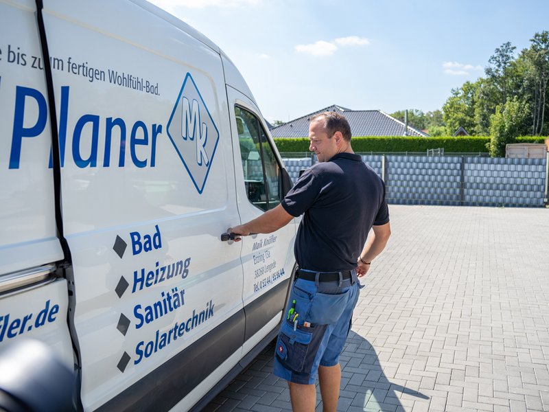 - Voll ausgestattetes Montagefahrzeug mit hochwertigen Arbeits- und Kommunikationsmitteln