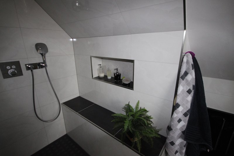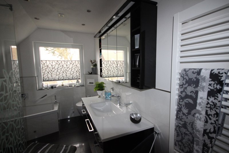„Unser Bad ist zu klein und wir möchten weder auf eine Dusche noch Badewanne verzichten.“ teilten die Kunden uns bereits beim Aufmaß des Badezimmers in Salzgitter mit. Der bestehende Drempel konnte 50 cm nach hinten versetzt werden, somit bot der Raum genügend Platz für eine Badewanne und Dusche.