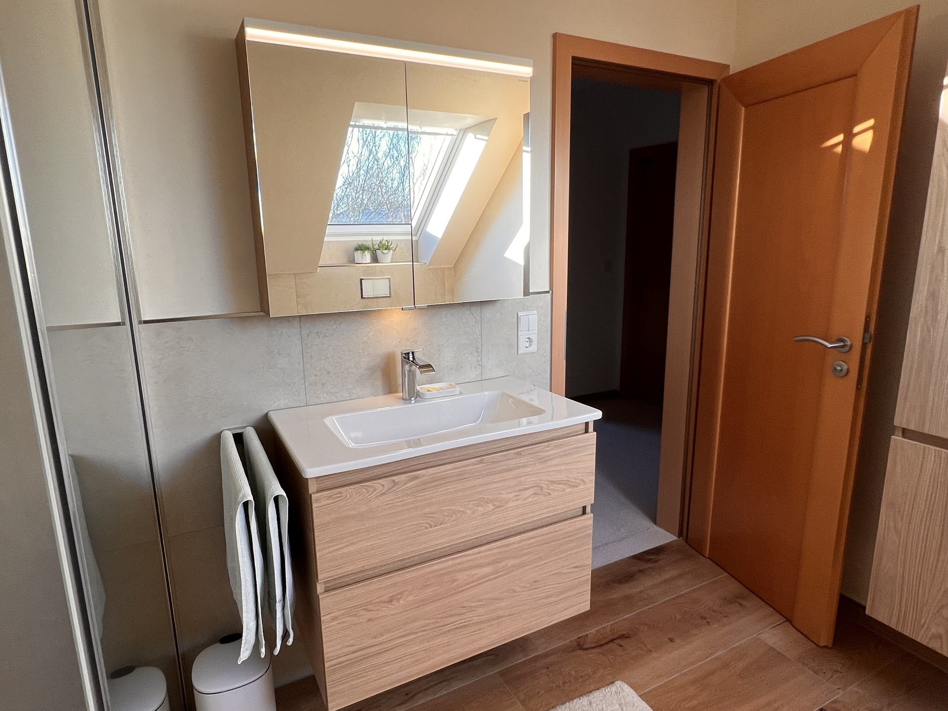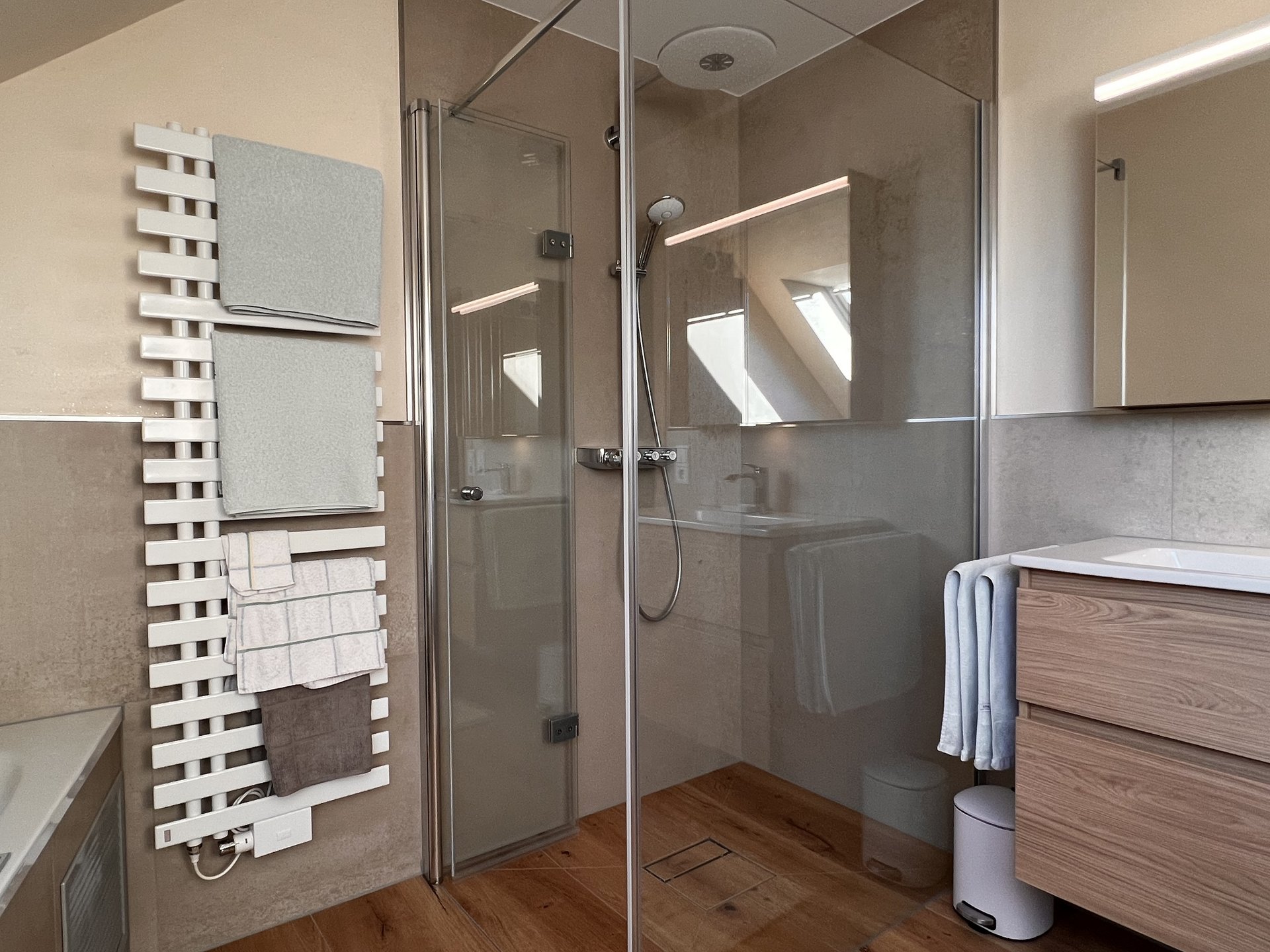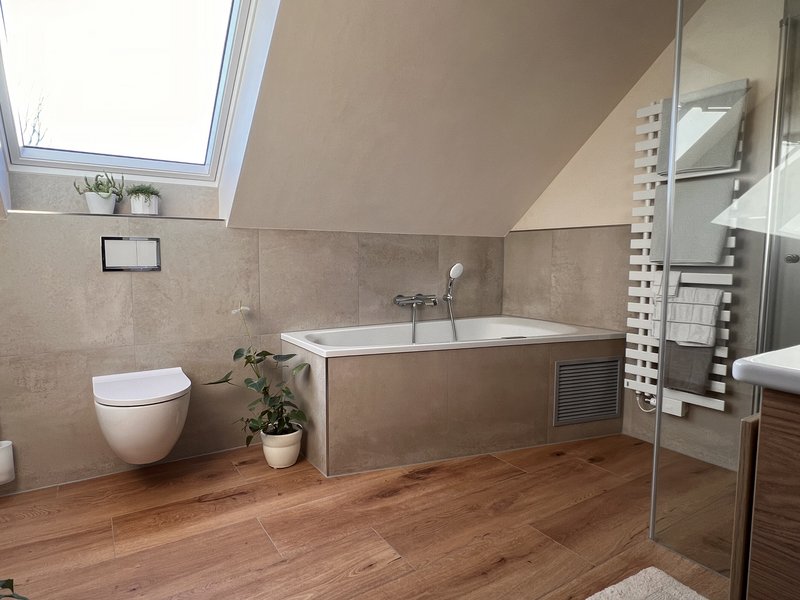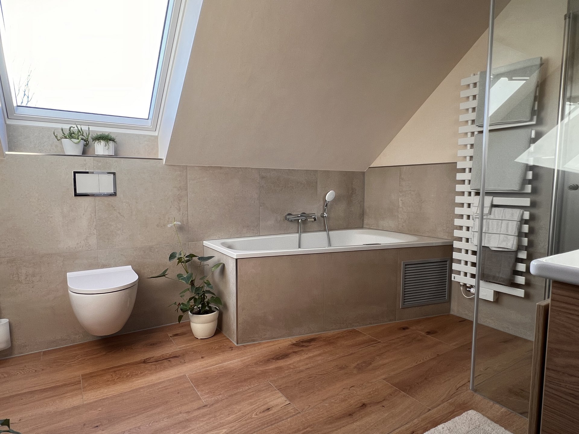 Unsere Kunden wünschten sich ein Badezimmer, das Entspannung und Wohlbefinden vereint. Die Lösung: Eine luxuriöse Badewanne mit Poolsystem für pure Erholung. Ergänzt wurde das Wellness-Feeling durch eine großzügige, ebenerdige Dusche mit einer großen Kopfbrause – für ein erfrischendes Duscherlebnis. Damit das Wohlfühlambiente perfekt wird, sorgt eine Fußbodenheizung für angenehme Wärme und Komfort. Ein Badezimmer, das keine Wünsche offen lässt!